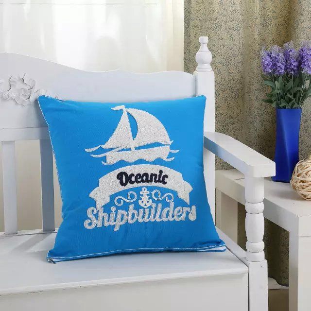 Blue Cute Cartoon Series Embroidered Towel Embroidered Car Sofa Cushion Pillow Case